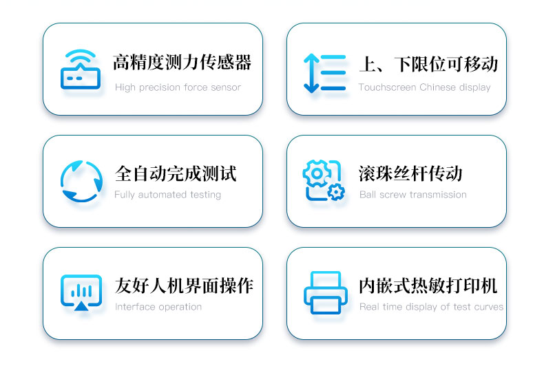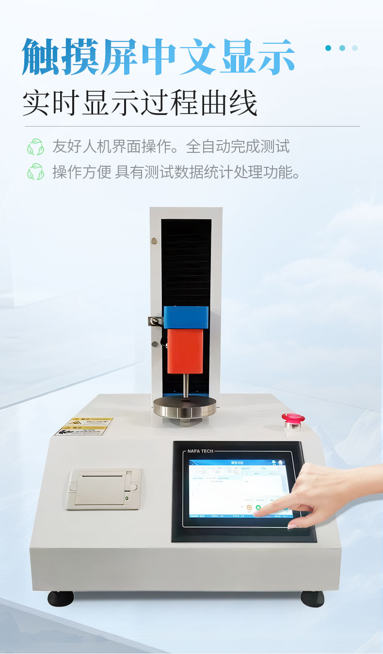 3、大觸摸屏中文顯示(可中英文切換),友好人機界面操作。全自動完成測試。操作方便,具有測試數(shù)據(jù)統(tǒng)計處理功能。