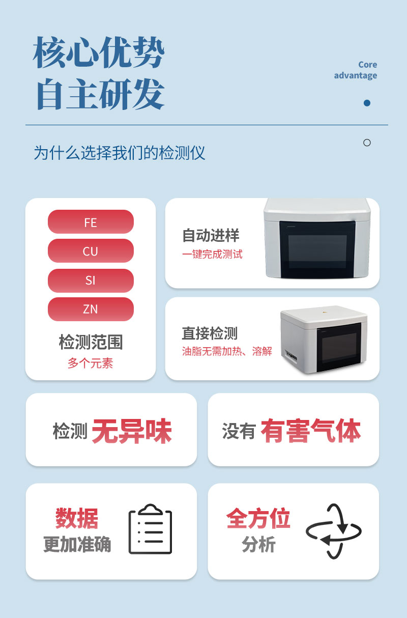 潤(rùn)滑油脂直接放進(jìn)油盒進(jìn)行檢測(cè),無需對(duì)油脂進(jìn)行加熱、溶解等步驟,不破壞樣品。全程檢測(cè)無異味、無有害氣體,無需放置于通風(fēng)櫥,對(duì)試驗(yàn)人員的健康提供了保障;